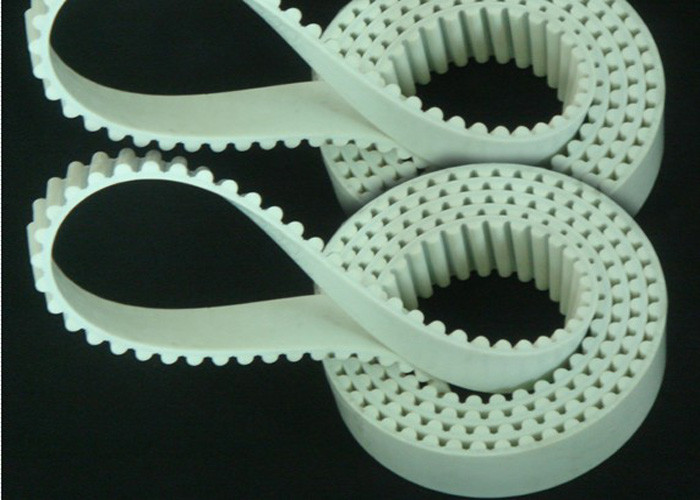 A correia cronometrando lisa do plutônio é feita no poliuretano termoplástico, com cabos de aço espirais contínuos. É serido especialmente para o poder síncrono e transportando com altas velocidades (até 10,000RPM), os tamanhos que nós temos para o poliuretano articularam/correias cronometrando soldados são como segue: XL, L, H, XH, 3M, 5M, 8M, 14M, 20M, S3M, S5M, S8M, S14M, S20M, T2.5, T5, TT5, T10, T20, AT5, AT10, AT20 etc. A largura a mais grande é 200mm. Reforce o cabo pode ser feito do cabo de aço ou do cabo de Kevlar.